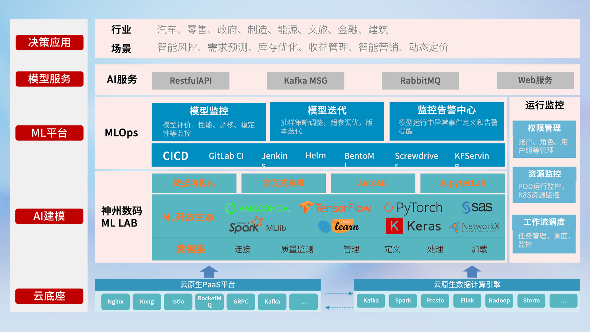 数据+模型双引擎驱动,,,,面向智能服务场景,,快速灵活利用AI技术,,支持业务决策,,,,助力企业智能化转型破局。。